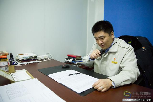 2月27日,中建二局北京分公司第八項目部項目經(jīng)理、黨支部書記石榮在西單文化廣場升級改造項目現(xiàn)場辦公。圖為石榮在辦公室辦公(圖片來源:tuku.qianlong.com)。千龍網(wǎng)記者 于穎攝