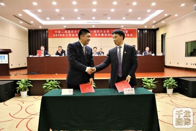 2019年1月,在中建二局2層會議廳內(nèi),石榮代表團隊和公司簽訂《經(jīng)營業(yè)績責任書》。中建二局北京分公司供圖 千龍網(wǎng)發(fā)