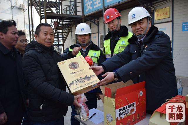 2019年2月6日,在中建二局北京分公司西單文化廣場升級改造項目的生活區(qū)內(nèi),石榮為留守工地的農(nóng)民工發(fā)放慰問品。中建二局北京分公司供圖 千龍網(wǎng)發(fā)