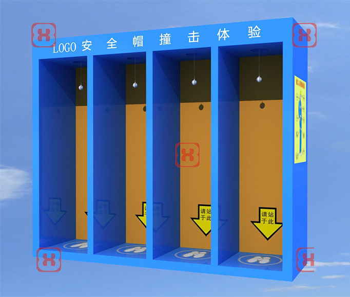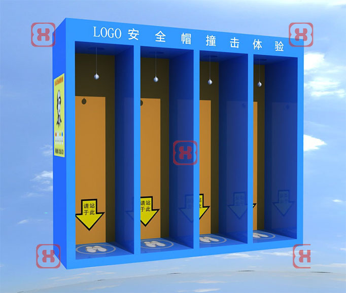 1、安全帽撞擊體驗設置為四人用含帶遙控裝置,尺寸一般為3500*1000*2500mm,可根據(jù)現(xiàn)場實際尺寸調(diào)節(jié)。