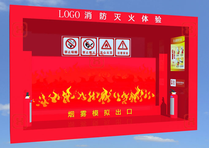 2、體驗(yàn)時(shí)打開遙控開關(guān),模擬火災(zāi)現(xiàn)場(chǎng)濃煙效果。使體驗(yàn)者能夠正確的使用各類滅火器。